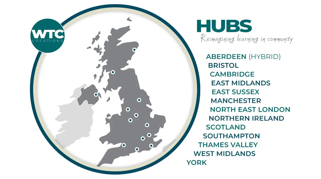 Map of WTC UK Hub Locations (13 Hubs)